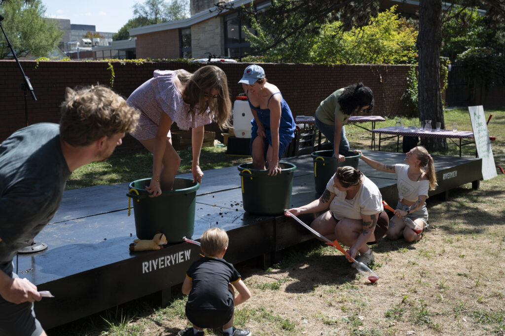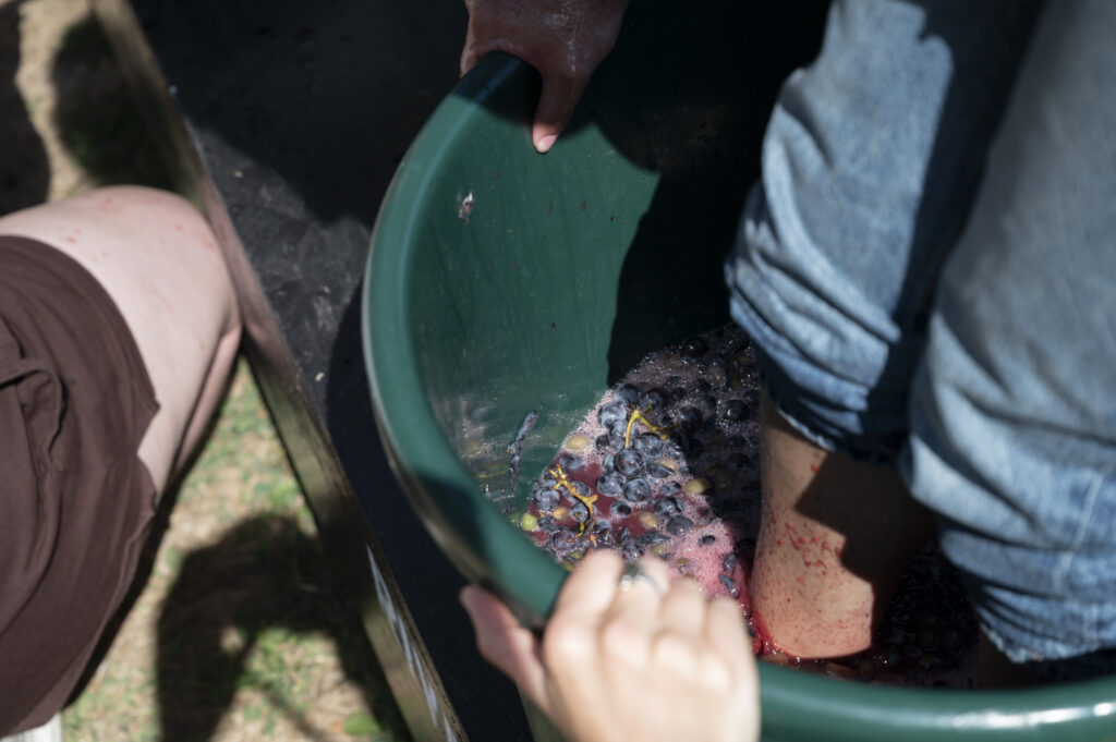 Contestants stomp grapes at the Pittsburgh County Fair on Sept. 13, 2025. Credit: Mars Johnson
