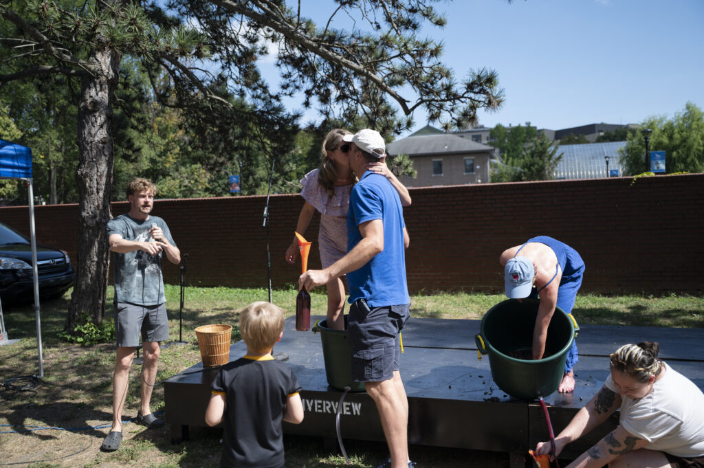 Erin and Holger Spurte kiss after winning the grape stomping contest on Sept. 13, 2025. Credit: Mars Johnson
