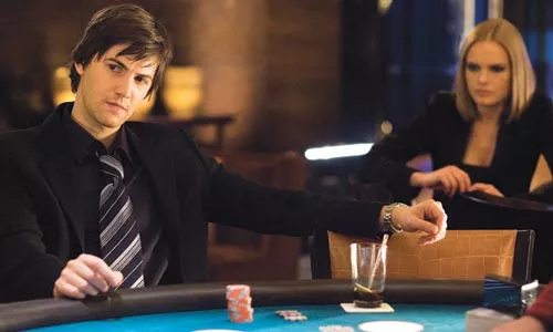 Robert Luketic’s film takes the cautionary true tale of MIT students involved in an organized, elaborate card-counting blackjack venture and turns it into a bouncy, pretty-people comedy. As adapted from the best-selling book Bringing Down the House, 21 is very light entertainment that scrimps on the story’s best aspects: the mechanics of card-counting, the shadowy world of casino security, and the uneasy collusion of brains, greed and immorality. Instead we get the most adorable, shaggy-haired MIT nerd ever (Jim Sturgess), cartoonishly malevolent adversaries (Kevin Spacey, Laurence Fishburne), and easy-to-digest added storylines that absolve all the cute players of any personal failings. Twinkly fun set to a toe-tappin’ beat, but about as engaging as gambling for Hershey’s kisses. (AH) [capsule review]
