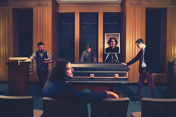 You might feel a bit uneasy when you throw on Shaky Shrines’ full-length, Mausoleum, even before the music begins. It’s by design. The death-comes-for-us-all vibe starts with the cover art (pictured above), which depicts the band’s members attending what appears to be bassist Nate Campisi’s funeral. Then take a look at the track titles: “Strangers’ Eyes,” “Dark, Dark Houses,” “Someone’s in the Basement.”