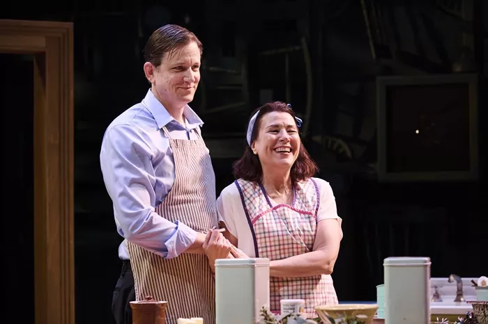 The production, with its predominantly middle-aged cast, relies on the physical acting abilities of the supporting cast to properly illustrate a character’s age. Andrew William Smith proves himself a knockout physical actor. His primary character, Matt, Ernestine’s high school sweetheart-turned-husband, begins the show by sauntering about the stage with the aloofness of a cocky, yet disappointing teenage nephew before he morphs into a heavy-footed father more than comfortable taking up space in his home.
