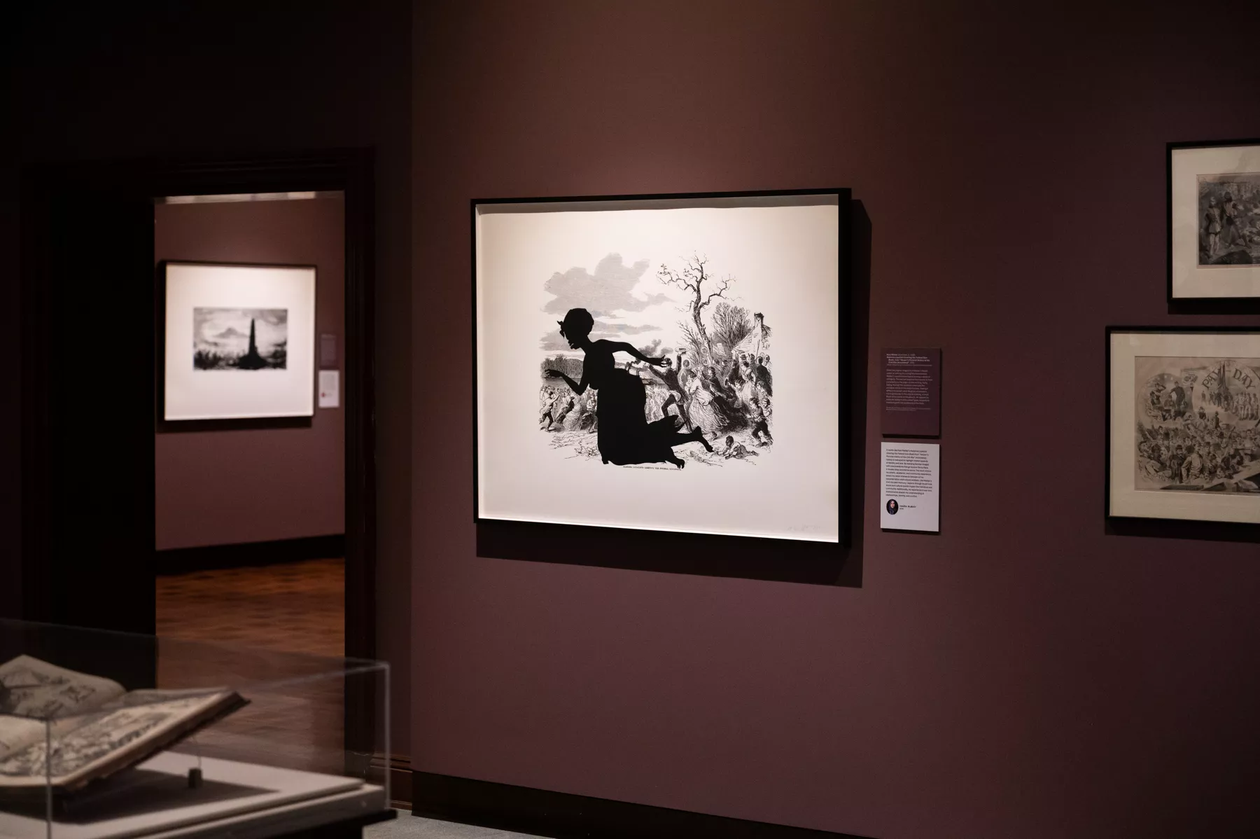 “Homer’s illustrations were not wholly factual depictions of what was actually happening,” Brean explains. “His works are as much a concoction as the ‘annotations’ Walker inserts into the historic prints. Seen together, Homer’s and Walker’s prints offer opportunities to see the parallels between the two bodies of work as a witness to American history.”