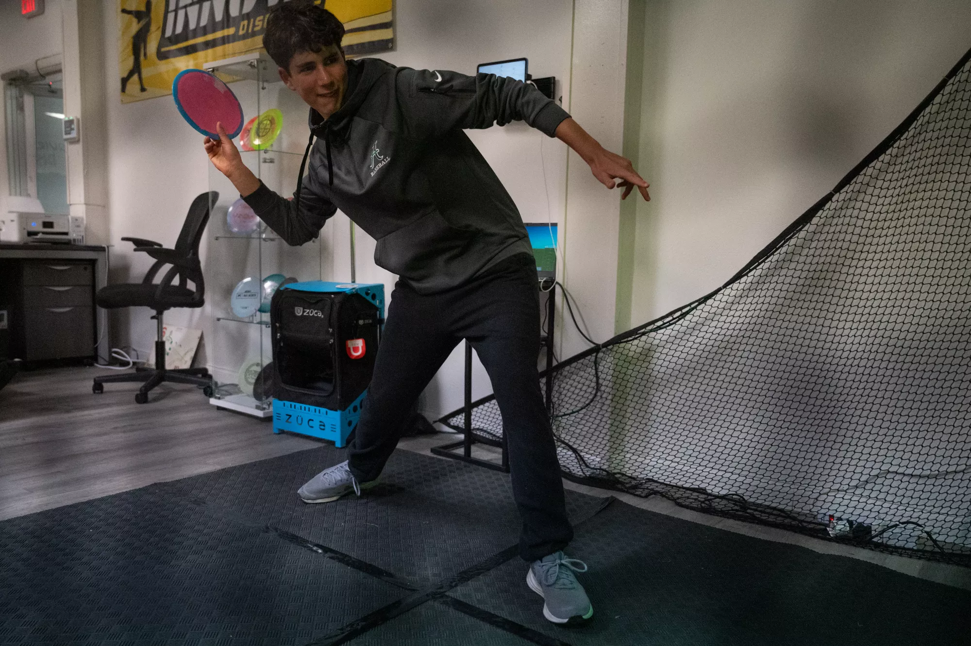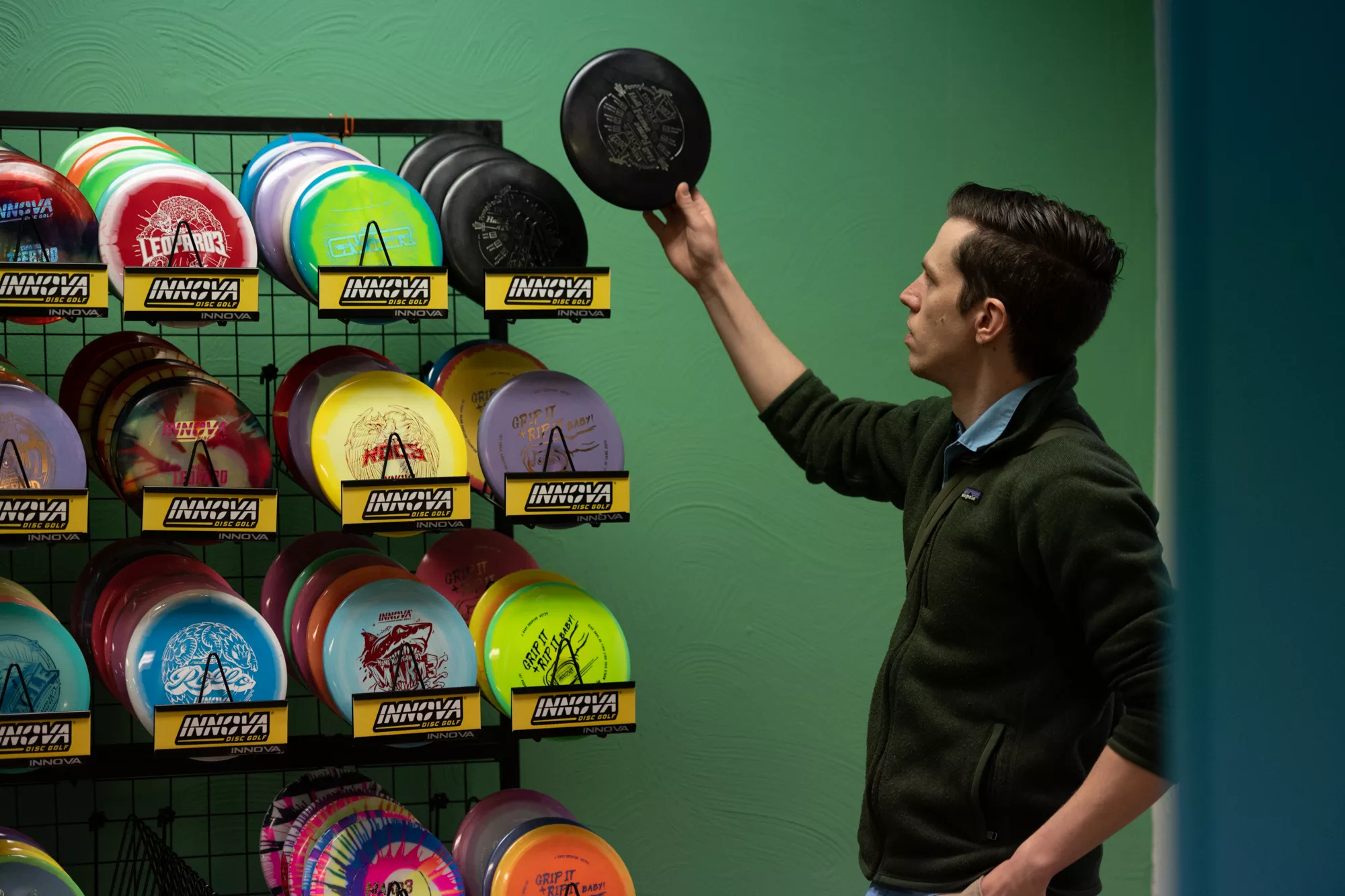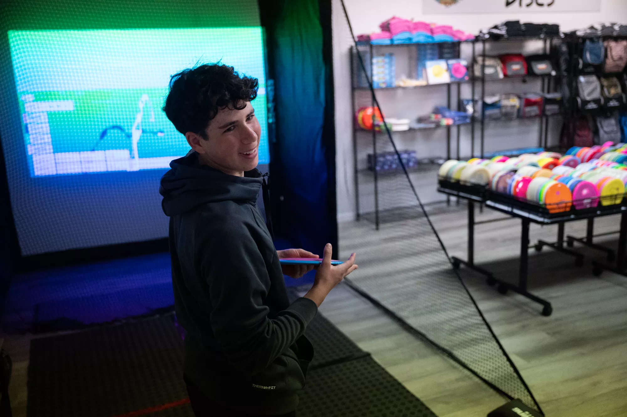 “People come in and they’ll be here for an hour. They want to talk about disc golf. They want to browse some discs. Maybe they throw a few in the [simulator],” he says. “Maybe we have the pro tour going on on the TV. It’s kind of like a whole event for them.”