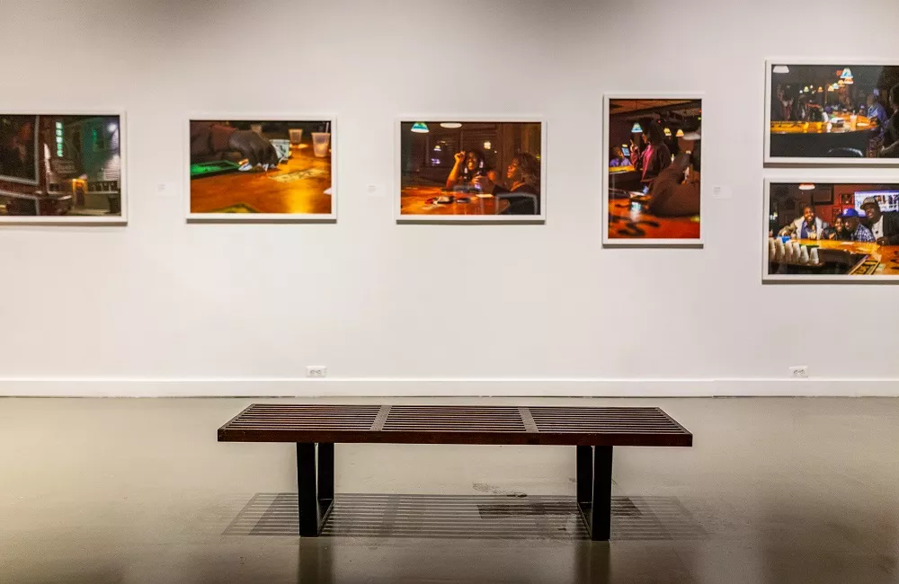 Vanishing Black Bars & Lounges is the first major solo exhibition for L. Kasimu Harris, a New Orleans-based photographer documenting the loss of Black-owned social spaces in his hometown. (He describes his journey, which began in January 2018, in an illuminating photo essay he wrote for the New York Times earlier this year.) The photographs capture the rich culture and traditions associated with Black-owned bars and social clubs in New Orleans, even as they are quickly coming under white ownership.