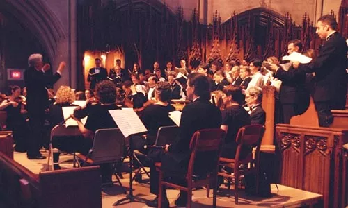 “I used to do a lot of harpsichord playing — I lived in Germany for a while and concertized there,” he recalls. “But I hoped to start a collegium for university students, just like Bach did in Leipzig back in 1720. When our choral director, John Goldsmith, and I both realized we loved Bach cantatas, he said, ‘Let’s do it — you get the orchestra and I’ll prepare the singers.'”