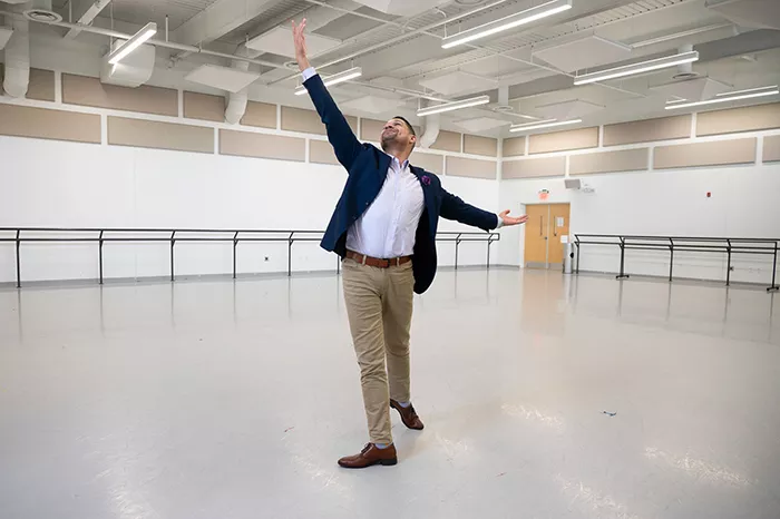 His career has led to stints with some of the world’s most prominent dance companies — including Alvin Ailey American Dance Theater, Alonzo King LINES Ballet, and Milwaukee Ballet Company — and has taken him all over the world. He also worked as the inaugural Dance Department Chair at the New Mexico School for the Arts in Santa Fe and served as a U.S. Embassy Culture Connect Envoy to South Africa through the U.S. State Department.