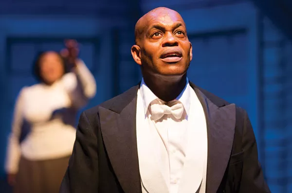 But whether a sharecropper farmboy or worldwide star, Hayes still faced racism and the indignities of Jim Crow. Central to the play is a real 1942 incident in a Georgia store; Hayes was beaten by police after protesting the treatment of his (offstage) wife and daughter for sitting in the “whites-only” section of the shoe department while shopping. Beaty takes various liberties with other biographical facts, but the truth of Hayes’ greatness shines through.