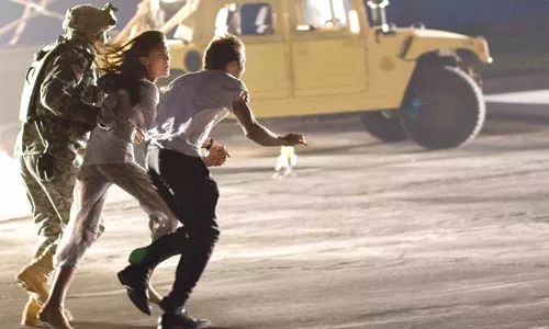 It all starts benignly: Jason (Mike Vogel) and his girlfriend, Lily (Jessica Lucas), are planning a surprise going-away party for his brother Rob (Michael Stahl-David), who is moving to Japan. (Homage to Godzilla, perhaps.) The party and its aftermath are videotaped by Rob’s best friend, Hud (T.J. Miller). Once the attack begins, these four are joined by the object of Hud’s hormones, Marlena (Lizzy Caplan). The group sets out simply to escape Manhattan, but returns to the borough to save Rob’s sweetie, Beth (Odette Yustman), who is trapped on the 39th floor (naturally) of her half-destroyed Columbus Circle apartment.