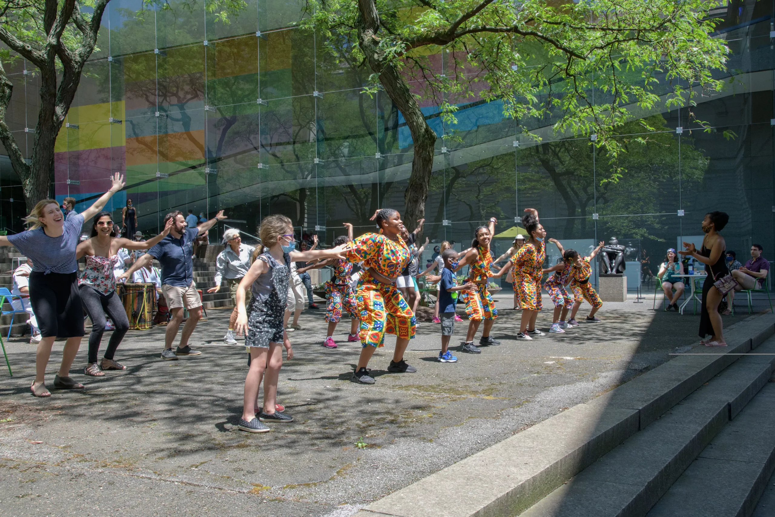 “We started thinking about this theory in the courtyard and the overall concept was to work with small and mid-sized performing arts organizations and independent performers in the realm of performance in the courtyard,” she says. “Instead of a stage, we thought about physical distancing. If the performance is happening around you, you can be in your pod. And then it would be anchored by DJs to really get the energy and connect with the work that the artists are doing.”