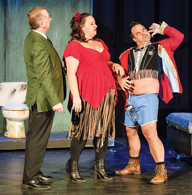 Matthew J. Rush, Candice Fisher and Damon Spencer in Dirty Rotten Scoundrels Credit: Photo courtesy of Image42