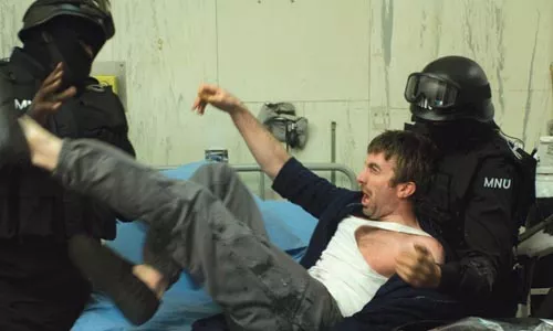 Writer-director Neill Blomkamp’s geopolitical-ish sci-fi thriller District 9 fleshes out his similarly themed 2005 short film, “Alive in Joburg.” The action kicks in when Wikus Van De Merwe, a manager at MNU — the private security firm tasked with relocating the prawns — is contaminated while processing evictions in District 9. He is horrified to discover parts of his body turning “prawn.”