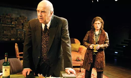 I never thought I’d live to say this, but it is actually possible for a play to be too depressing. The amount of self-loathing and regret in which McPherson’s undertaker, John Plunkett, swims is equaled only by the amount of booze he guzzles. There’s not a single moment of his past or present he can look at without being mortified by misery.
