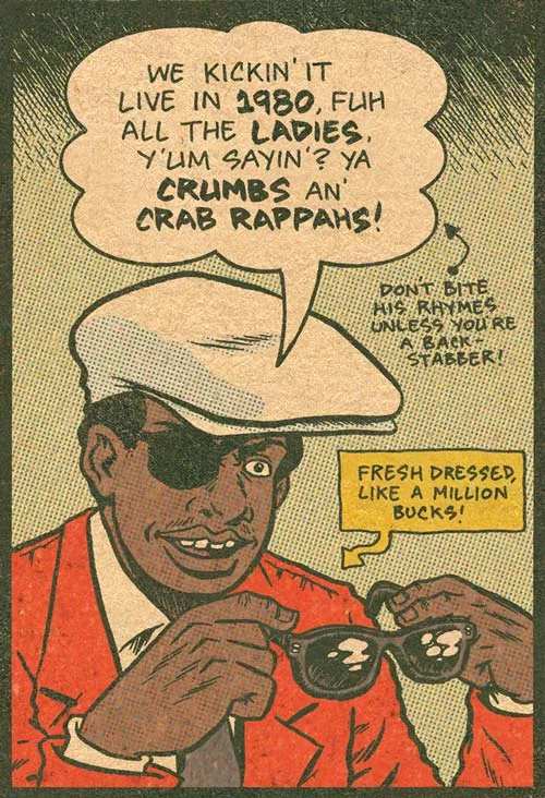 Piskor is known for his critically acclaimed computer-hacker epic Wizzywig, and for collaborations with the late Harvey Pekar including The Beats, which Piskor partly illustrated. Hip Hop Family Tree — Piskor’s first book in full color — paints a big picture, from the music to the graffiti and more that comprise hip-hop culture. “It’s very important to note that the main character is hip hop, and all of these people are just little bits to create the whole,” says Piskor, 31, a life-long hip-hop fan.