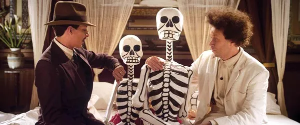 We never see Eisenstein at work, but instead are spectators to his sexual awakening (with his Mexican guide, played by Luis Alberti) and his ruminations on love and death (so conveniently intertwined in Mexican culture). Eisenstein also enjoys Mexico’s sunny sensuality and his hotel’s brocaded luxury, situations likely in contrast to his more repressed and austere life in the Soviet Union.