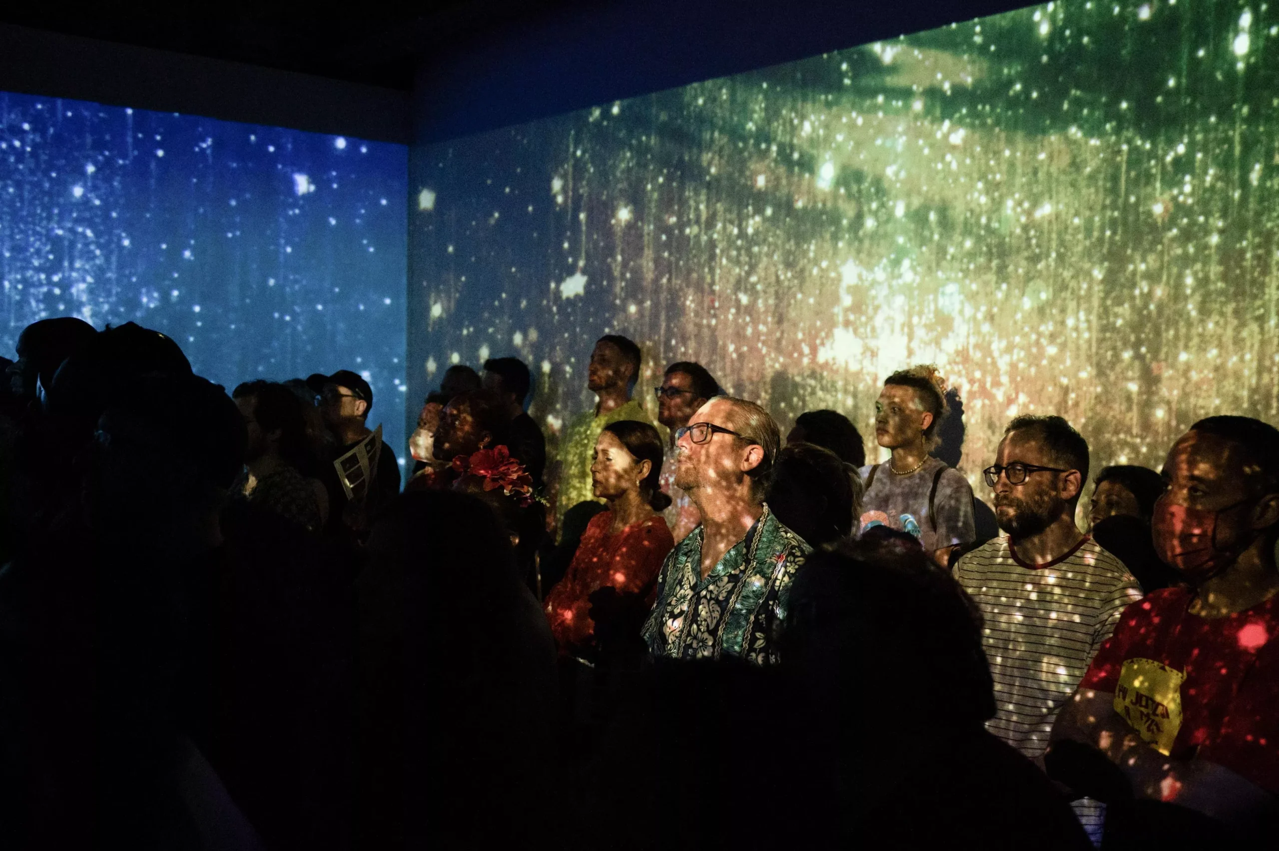 A crowd watches a performance on opening night of Myth-Science of the Gatekeepers by Rainbow Serpent Collective at the Pittsburgh Glass Center on May 3, 2024. Credit: CP Photo: Mars Johnson