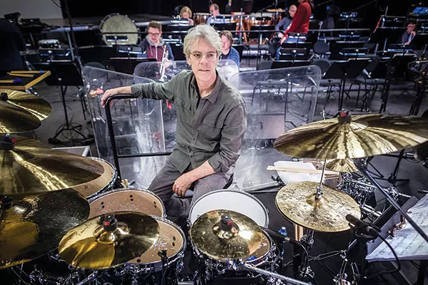 While the event of a composer performing his work with an orchestra is not so unusual, that composer being a drummer — a bona fide trap-set drummer — absolutely is. And while percussionists performing original works with percussion ensembles is not wholly unusual (see: Steve Reich. et al.), a composer accompanying a full-scale orchestra on a drum set is virtually unheard of.
