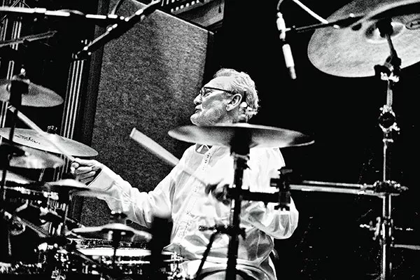 He and Blakey were the first to meet, at a festival in the early ’70s. “Both our kits were there. And some bright spark came up with the idea that we [play together]. No rehearsal, nothing. It ended up as the most fantastic duet. We both hit the same pattern at the same time and from that point on, it just went crazy,” he says with a hearty laugh.