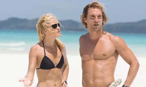 It’s not enough that a pair of beautiful sniping exes — Matthew McConaughey and Kate Hudson — are searching for lost Spanish treasure in the Bahamas. No, this breathlessly scripted sunny turd has to toss in subplots involving a Diddy-esque rap impresario and his goons; a dim-bulb teen party girl (a la Paris Hilton) and her elderly zillionaire father (Donald Sutherland, cashing a check and getting a tan); and four extraneous “colorful” characters, including two gay chefs, a salty treasure bum and a stray Ukrainian. Andrew Tennant’s comedy-romance-adventure fails to deliver any facet of its hybrid genre, and just spins its wheels for two hours. (The film’s best joke doesn’t even get a proper airing: You have to look quick to see that the treasure-hunting boat is named Booty Calls.) Thus, the film’s chief attractions are the pretty Caribbean scenery, and the well-sculpted, sun-burnished form of Mr. McConaughey, who spends nearly the whole film in board shorts while running, swimming, jumping, falling and flexing. If that’s worth eight bucks to you, then come on board. (AH) [capsule review]