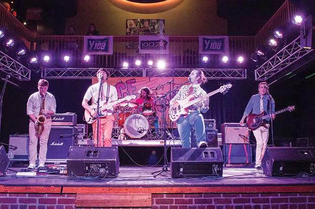 Not bad for a group that’s been together less than two years. But the closeness of these five guys — Barron, Stretch, guitarist Mike Saunders, bassist Jacob Rieger and saxophonist (yes, saxophonist) Tyler Handyside — is indicative of the amount of time they spend together, not just working on music, but also living their lives. The band grew organically out of necessity and friendships. Stretch was helping Barron record a solo record, when Rieger, who knew Stretch from when he answered Stretch’s Craigslist ad looking for a bassist on an earlier project, was brought in to play bass. Rieger and Stretch knew Saunders from playing in another band together, and when the decision was made to add a saxophonist, Rieger knew Handyside from high school.