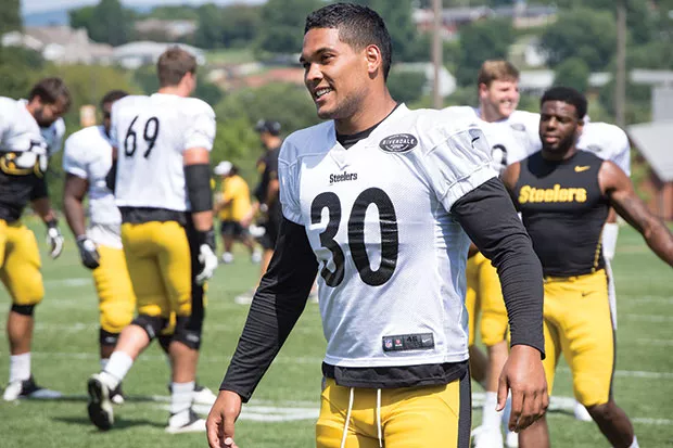 Fans and reporters would have to wait until the next play to see Conner carry the ball; when he did, the crowd cheered his two- or three-yard gain. They’d get a closer look on the following Sunday: In a preseason game against Atlanta, at Heinz Field, Conner made his NFL in-game debut, carrying 20 times for 98 yards. A pretty good first effort for a third-round draft pick.