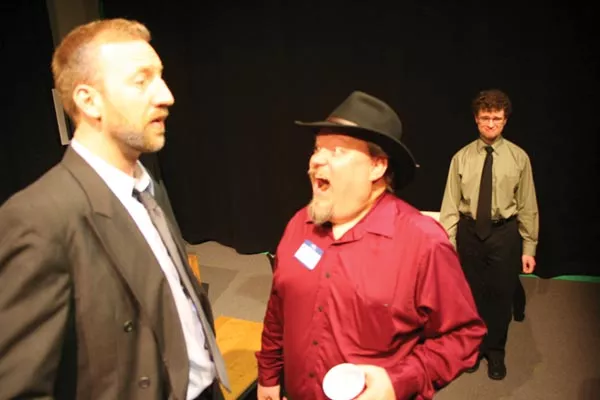 The premise is simple enough: At an industrial convention, three company men await the arrival of An Important Business Guy — their Big Kahuna, Godot, Great White Whale, maguffin, whatever. The quest/pursuit is the catalyst for three personalities to clash, mesh and re-form.