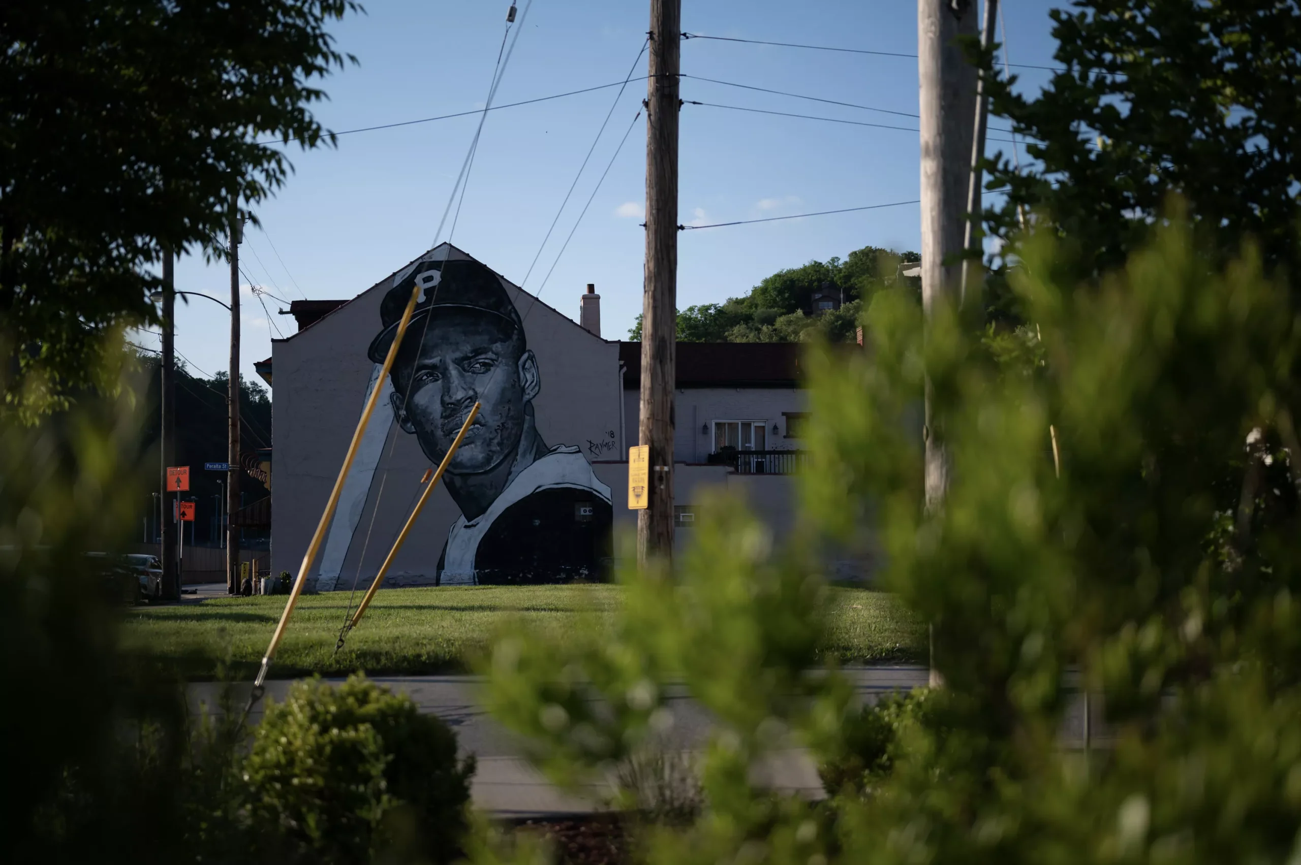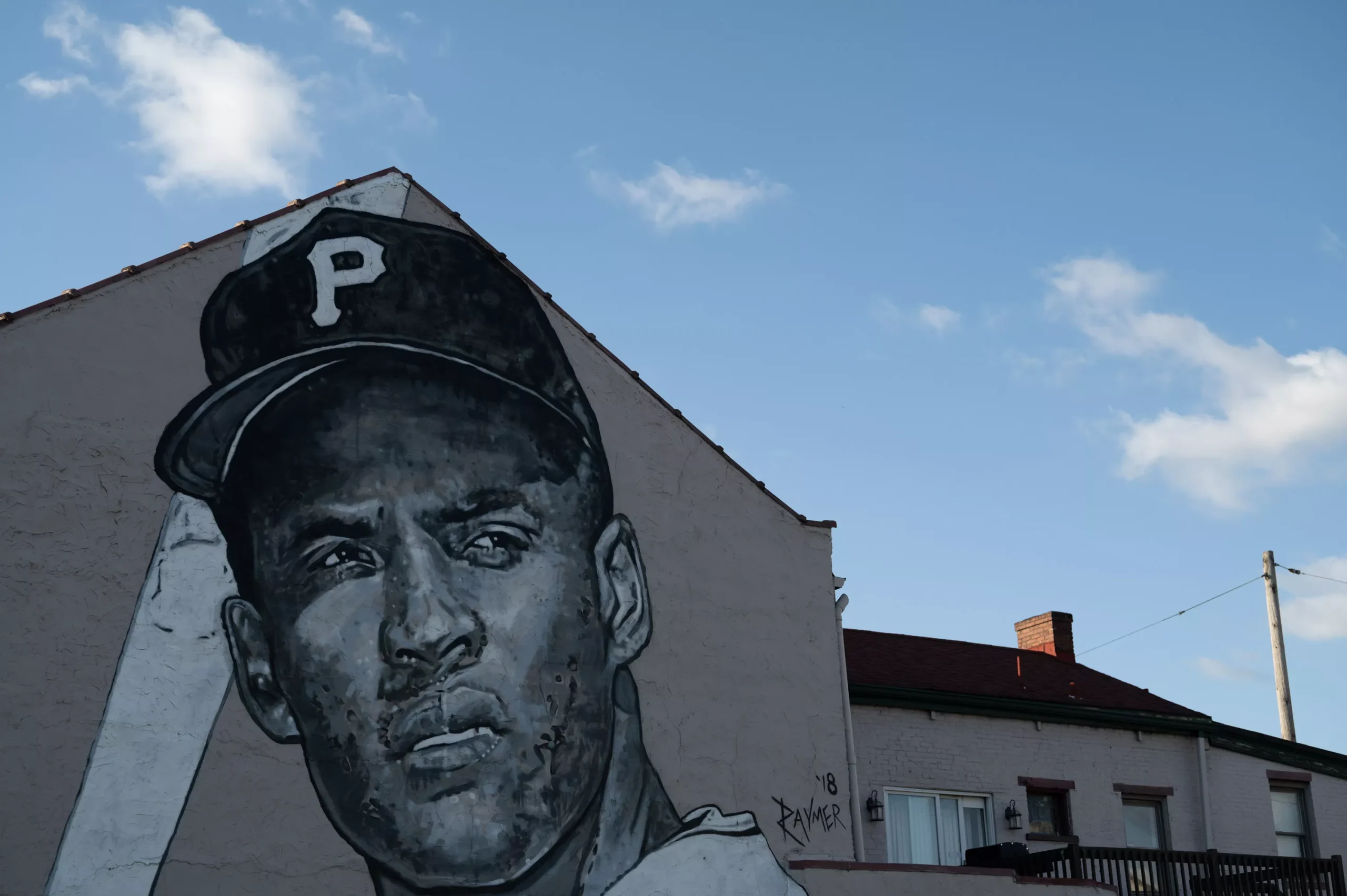 A mural of Roberto Clemente by Jeremy Raymer painted on the side of Verdetto’s on the North Side. Credit: CP Photo: Mars Johnson