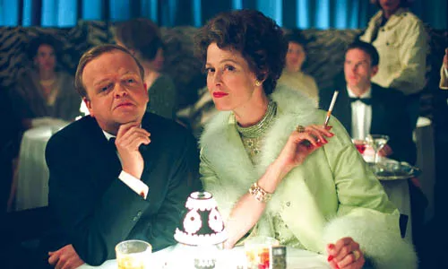And so we get some playful celebrity-as-celebrity casting. Gwyneth Paltrow is the singer Peggy Lee (she opens the movie warbling, passably, “What Is This Thing Called Love?”); Peter Bogdanovich is the amiably gruff publisher Bennett Cerf; Juliet Stevenson is Diana Vreeland, the pasty-faced socialite-editrix; and Sigourney Weaver, the daughter of famous NBC executive Pat Weaver, plays Babe Paley, the wife of famous CBS executive Bill Paley.