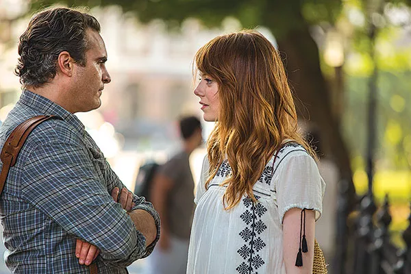This latest is a comedy that mashes up existentialism, philosophy, campus hi-jinks, a teacher-student romance and a murder. A depressed, self-pitying philosophy professor (Joaquin Phoenix) finds himself rejuvenated after committing said murder (while, of course, backing it up with lots of philosophical claptrap), and thus, becomes open to the affections of two women. One is his bright-young-thing student (Emma Stone), the other, a battle-hardened fellow professor (Parker Posey).