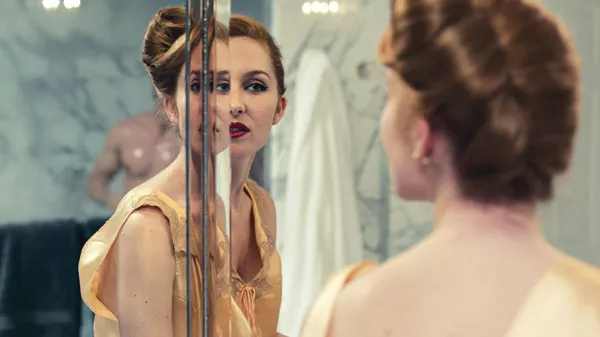 Flame-haired Djuna (Joséphine de La Baume) is bunking down in a Connecticut estate. She meets a handsome screenwriter named Paolo (Milo Ventimiglia) at the video store (!), and the pair become instantly enraptured, so much so that she confesses she’s a vampire. He doesn’t care, so she half-bites him and they become forever lovers.