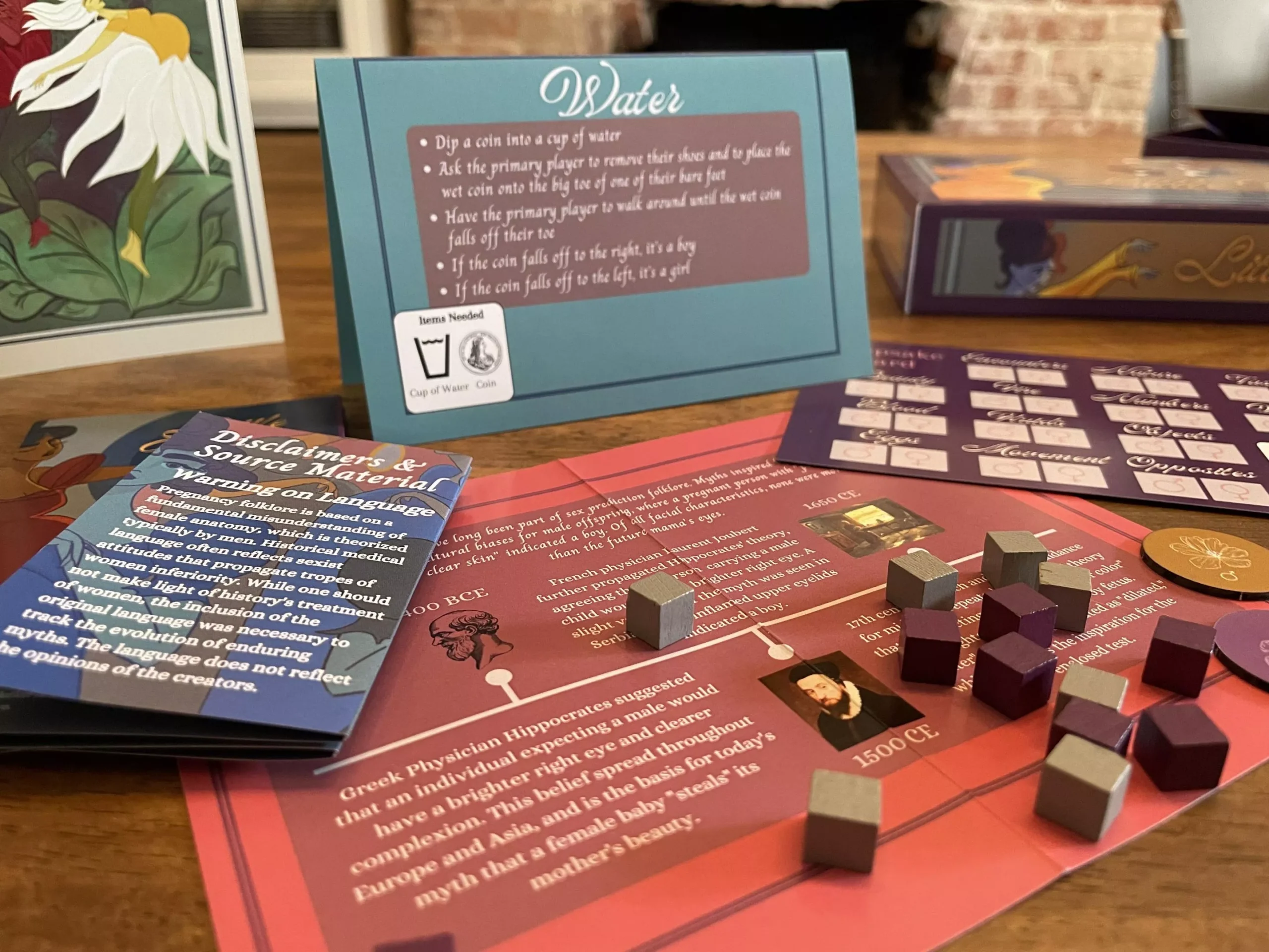 Another aspect of Little Fortunes is “reimagining” ancient myths for modern entertainment, as pregnancy folklore “takes a very sexist approach,” explains Weinberg. A “Beauty” test asks the pregnant person to stare into another player’s eyes for 15 seconds to observe if their pupils dilate. If they don’t, the test indicates a baby girl — a nod to sex prediction folklore based on the belief that female babies “steal” their mothers’ beauty, resulting in worse complexion and duller eyes.