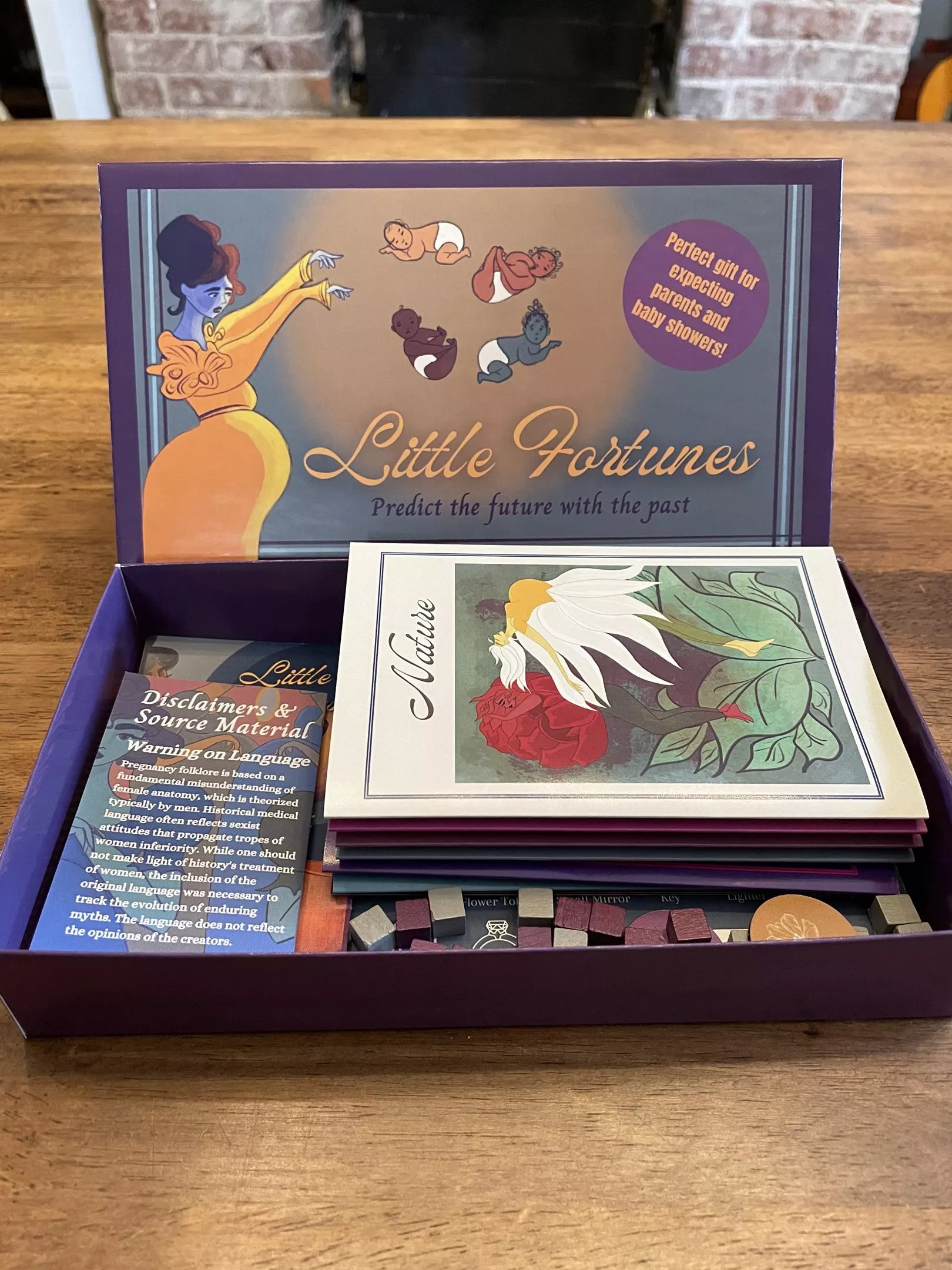 That first myth collection inspired Weinberg to make Little Fortunes, a game for expecting parents. Launched through his So Dreamy Media brand, the game invites soon-to-be parents to “predict” their baby’s sex through interactive tests based on pregnancy myths and folklore from around the world. Designed for baby showers and parties, the game can also be played in smaller settings or just between a pregnant person and their partner.