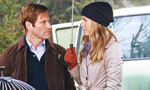If you’re not put off by the utterly generic title of this reputed romantic comedy from Brandon Camp, you may be undone by the dreary maudlin filler. This contrived tale of a professional grief counselor (Aaron Eckhart) still devastated by his own loss, who meets an agreeably quirky florist (Jennifer Aniston) is just a feeble rom-com mish-mash crammed onto the back of a postcard from Seattle. Most of the film is like being trapped in a self-help seminar you never signed up for. (If I really could move forward, I’d get up and walk out of the theater.) When we’re not sharing and caring with grieving strangers, we’re the third wheel on a couple of those silly only-in-the-movies dates. (If you’ve ever wanted to see Aniston pilot a cherry-picker, this is your chance.) What this film lacks in too-cute kids and fancy cupcakes, it makes up for with a mouthy parrot and a hookah bar. There’s also a nutty bit with Martin Sheen as a sempre fi Marine that made me wonder if the actor had lost a bet with the director. So, to recap: lots of boo-hoo and a forced giggle or two; Eckhart looks good in expensive suits and Aniston wears a lot of cute wool hats; Martin, we hardly knew you — and for me, that’s about all that happened.