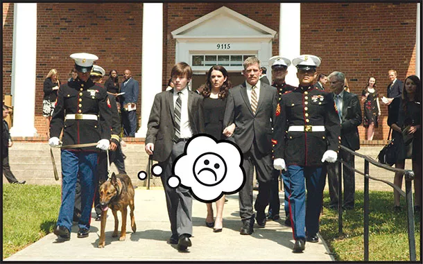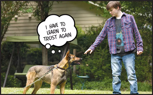 The mission goes wrong; Max’s handler, Kyle, is killed; and the dog returns stateside with PTSD.