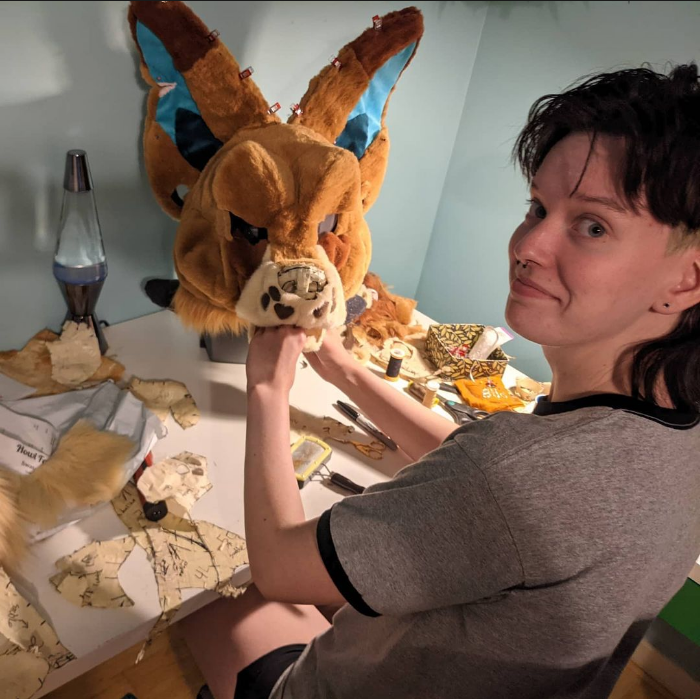 Brown says designing their first fursuit was “rough” as it took a few months, significantly longer than it takes them to create costumes now, along with numerous trips to craft supply stores to complete the project.
