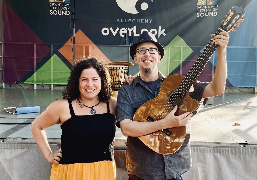 Without ever formally deciding, they became Geña y Peña: a duo blending Puerto Rican bolero traditions with Colombian echoes, rooted in two different paths that converged in Pittsburgh. Geña handles vocals and percussion, while Carlos plays guitar.
