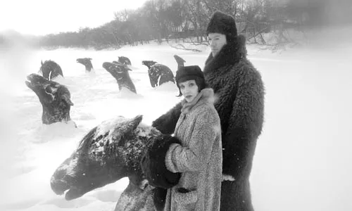 My Winnipeg is equal parts existentialism and metaphysics, a state of being and a state of mind. All Guy has to do to get out of town is not leave the train before it crosses the city line. Will he make it? He has mother issues: She’s “the most psychic of all Winnipeggers,” a foul, bitter, white-haired woman with probing eyes, but also an actress we hear Maddin directing from off-camera to say her lines more effectively.