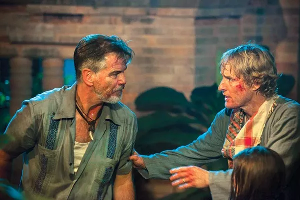 After an insta-coup — it’s not a joke to say “just add water,” because water privatization is the source of the problem — our hero (Owen Wilson), his wife (Lake Bell) and two daughters run around town, just barely escaping the usual horrors (and cinematic clichés) of violent uprisings. Thankfully, our man in Troubletown has befriended a “British CIA” fella (Pierce Brosnan), who is gifted at shooting dozens of people before breakfast. Brosnan’s ham-scented handsomeness is most welcome here. He makes a cheeky game of the pulpy material, and I wish the rest of the tedious cast, who never stopped hugging and crying, had navigated to the same wink-and-smile B-movie level Brosnan was playing on.