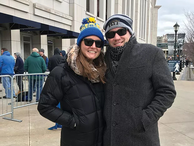 Alex and Caroline Plocki met at Pitt 10 years ago, fell in love, got married and moved to New Orleans. They were in New York for the holidays and when they heard Pitt would be playing at Yankee Stadium, they decided to get tickets for the Pinstripe Bowl.