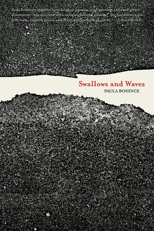 Locally based Paula Bohince’s new collection, Swallows and Waves (Sarabande Books, $14.95), comprises 60 poems based on paintings and prints from Japan’s Edo period. Its strongest creations are those which depart most from the subjects portrayed, and become not mere descriptions of art, but works of art themselves.