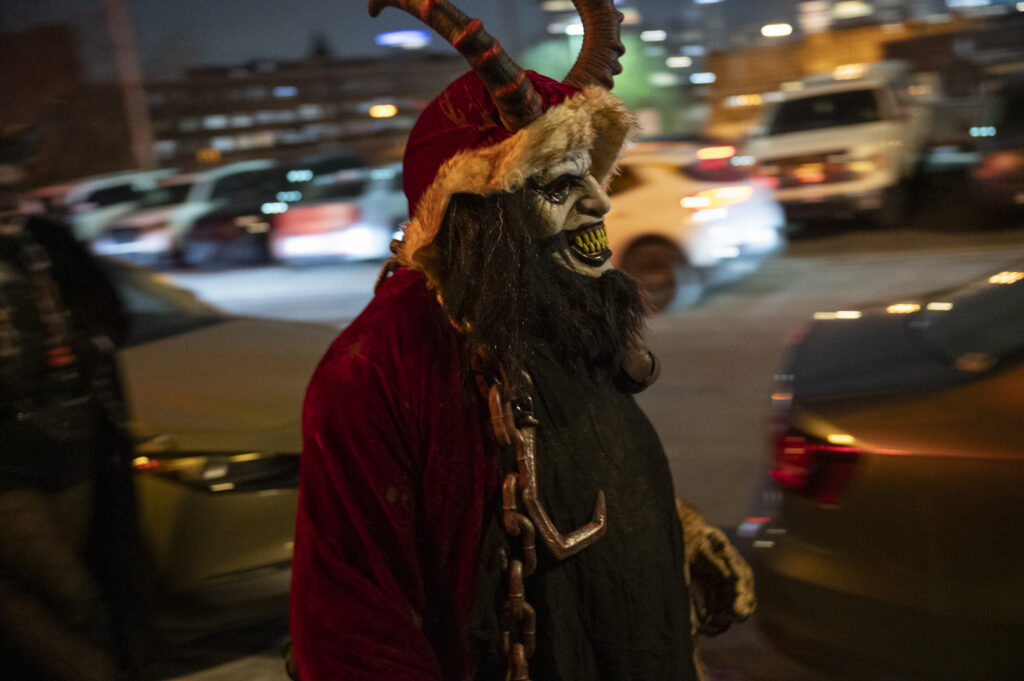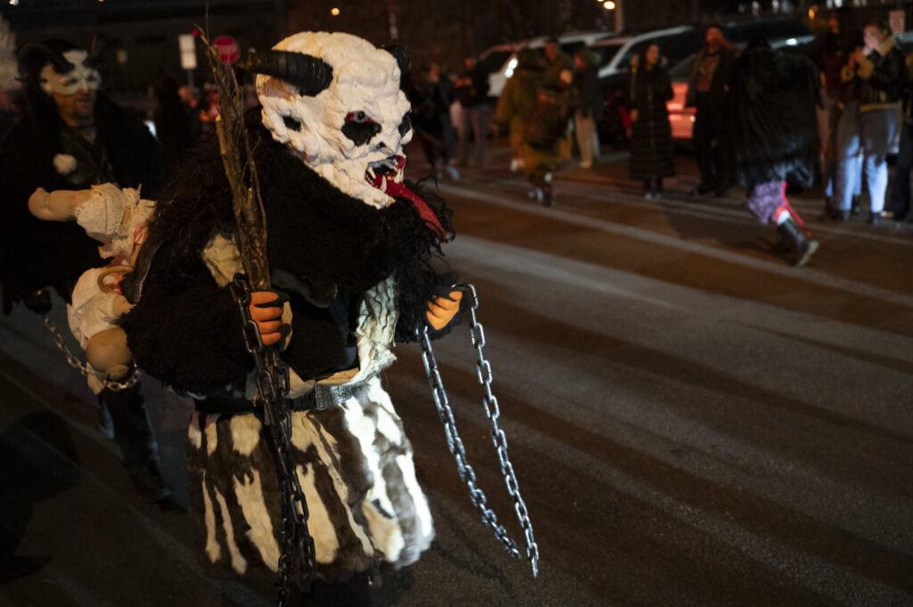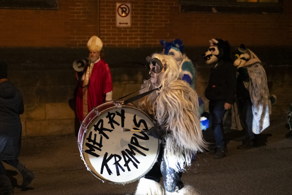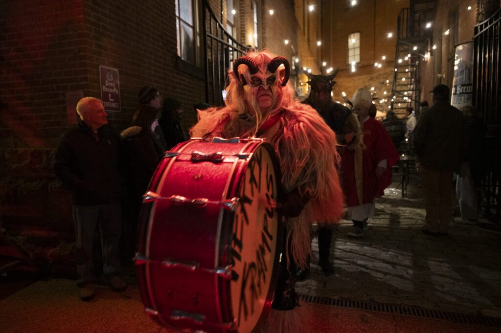 Sleigher the Krampus Band leads a parade outside of Penn Brewery on Dec. 5, 2025. Credit: Mars Johnson