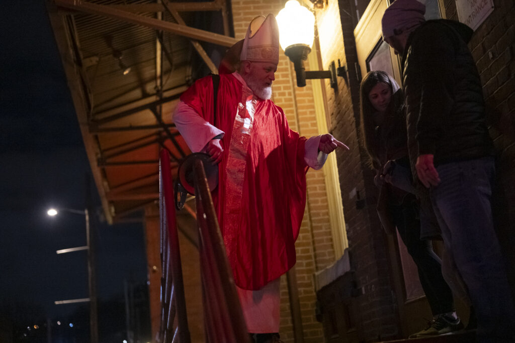 Douglas Sluke attends Krampus Fest dressed as St. Nicholas. Credit: Mars Johnson