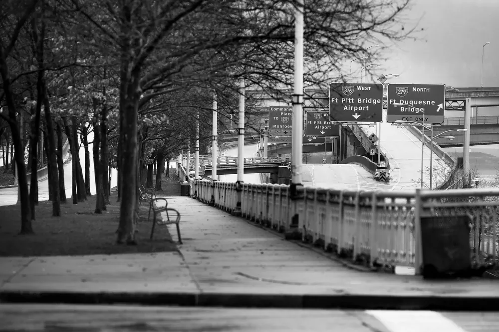 Normally overcrowded bus stops along Liberty Avenue merely provided a place to sit for a few on a smoke break. The Gateway T station, typically humming with people moving about, picked up and dropped off two people total in the time I was there. With trees blossoming along Fort Duquesne Boulevard, no one was in sight to admire them. And the usually bustling Boulevard of the Allies was one big empty swath of concrete, as if I was waiting for the winner of the Pittsburgh Marathon to make their way down the street to the finish line, void of cars.