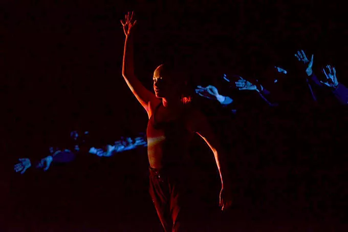 She adds that the approach makes the show “kind of a bizarre thing to look at.” Because of the way the light hits them, you may only see the upper body of one dancer, while the lower half of another dancer moves below them (this becomes even stranger when considering that each dancer wears different pairs of shoes). At one point, a single dancer is completely illuminated while beset by a flurry of disembodied hands belonging to the other dancers.