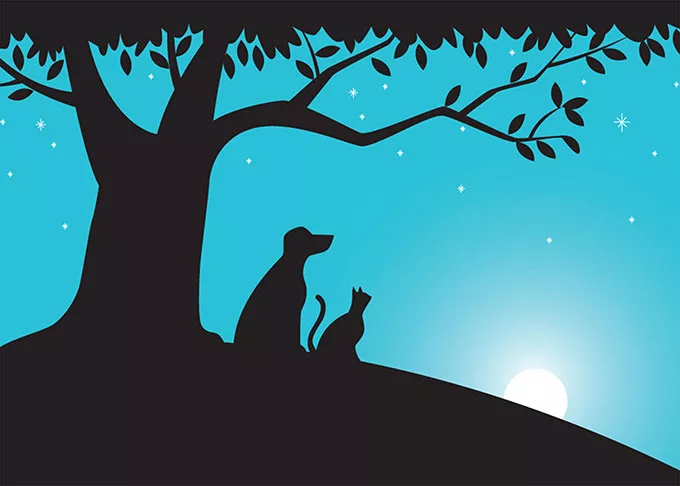 Klugworld Veterinary Communications’ line of cards are not just tasteful, but objects of art suitable for framing: A dog running carefree toward the rainbow bridge, a bunny leaping in stardust, a horse jumping through the clouds, a cat walking underneath a shooting star. A sample of the text inside one of the cards: “Please accept our deepest sympathy, and know that you and your beloved friend are in our thoughts today.”