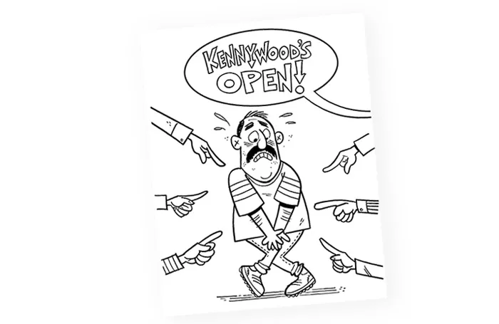 No one knows exactly where the “Kennywood’s open!” phrase originated, according to The Incline’s director Rossilynne Culgan, who traced it back to at least the 1950s. But Lewis’ illustration does a great job at capturing the fear of being caught with your zipper down, while showcasing his illustration style: a perfect blend of comics, humor, and what Lewis really excels at, capturing one’s facial expressions to the point where you truly feel the character’s embarrassment.