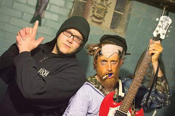 O’Connell-Barlow (whose aliases have included Mr. Pennsylvania, Grape-a-Don and, for this interview at least, Calvin Parker Pines) and Weeks met in middle school. They both happened to be New England natives in a Pittsburgh-area school, and further bonded over a mutual love of hip hop and the fact that, as O’Connell-Barlow recalls, “Damn near everyone else was a fucking idiot.” Around 1996 they started performing as Grand Buffet, and quickly developed immunity to caring what anyone else thought.