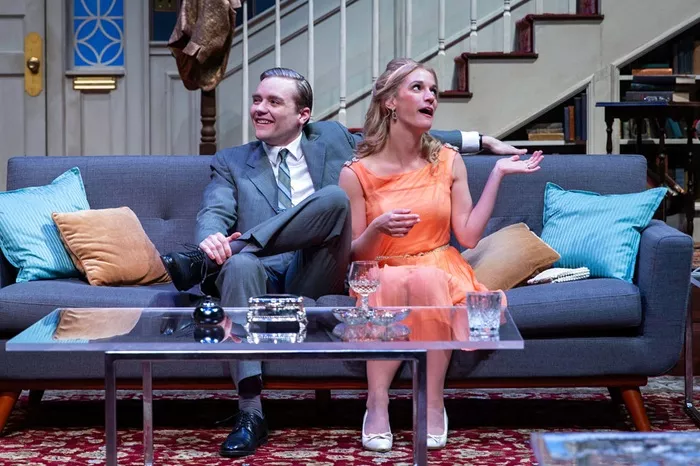 An old smoker’s laugh rattled as Broadway veterans Daniel Jenkins and Tasha Lawrence entered the mid-century, lamplit living room set on the stage of the O’Reilly Theater. In their Pittsburgh Public Theater debuts, the formidable duo initiated the 3.5-hour-long tug-of-war in Edward Albee’s iconic play Who’s Afraid of Virginia Woolf?
