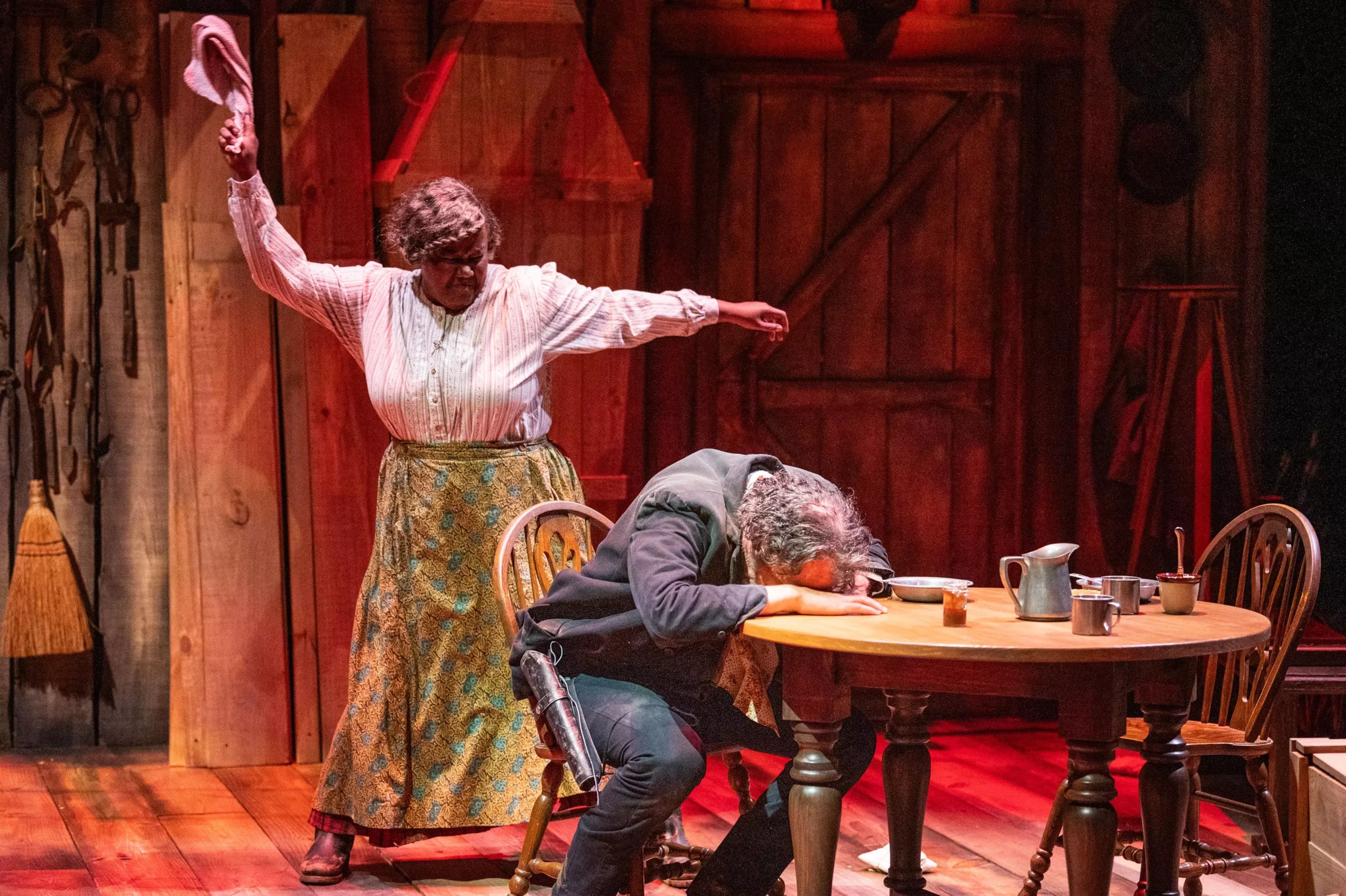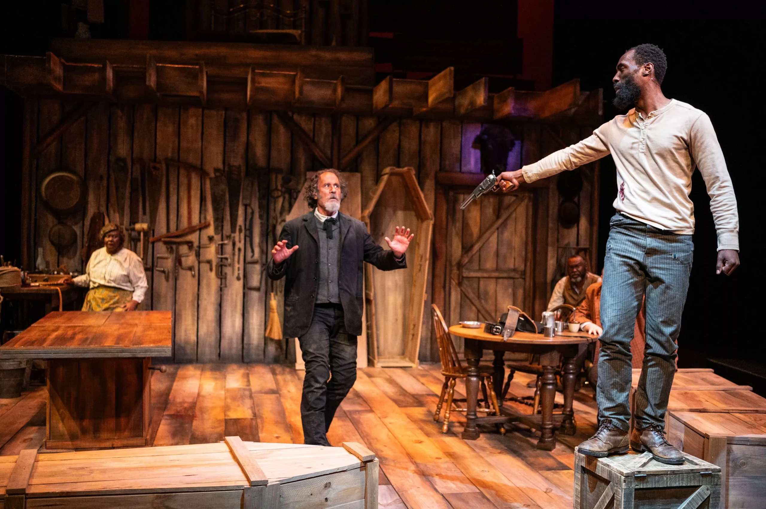 The Coffin Maker is not just any play; it’s a rich tapestry of history, humor, and raw storytelling. Set in 1849 Oklahoma, the play transports audiences back in time, capturing the essence of the era through meticulous attention to detail in dialogue, costumes, and set design. We follow Lawrence Ebitts (Garbie Dukes), the coffin maker, who is also a free formerly enslaved man. He and his wife, Eula (Robin R. McGee), live a quiet life preparing bodies for burial. One day, a bounty hunter and the fugitive he’s tracking enter into their world, disrupting the peaceful existence the couple has created.
