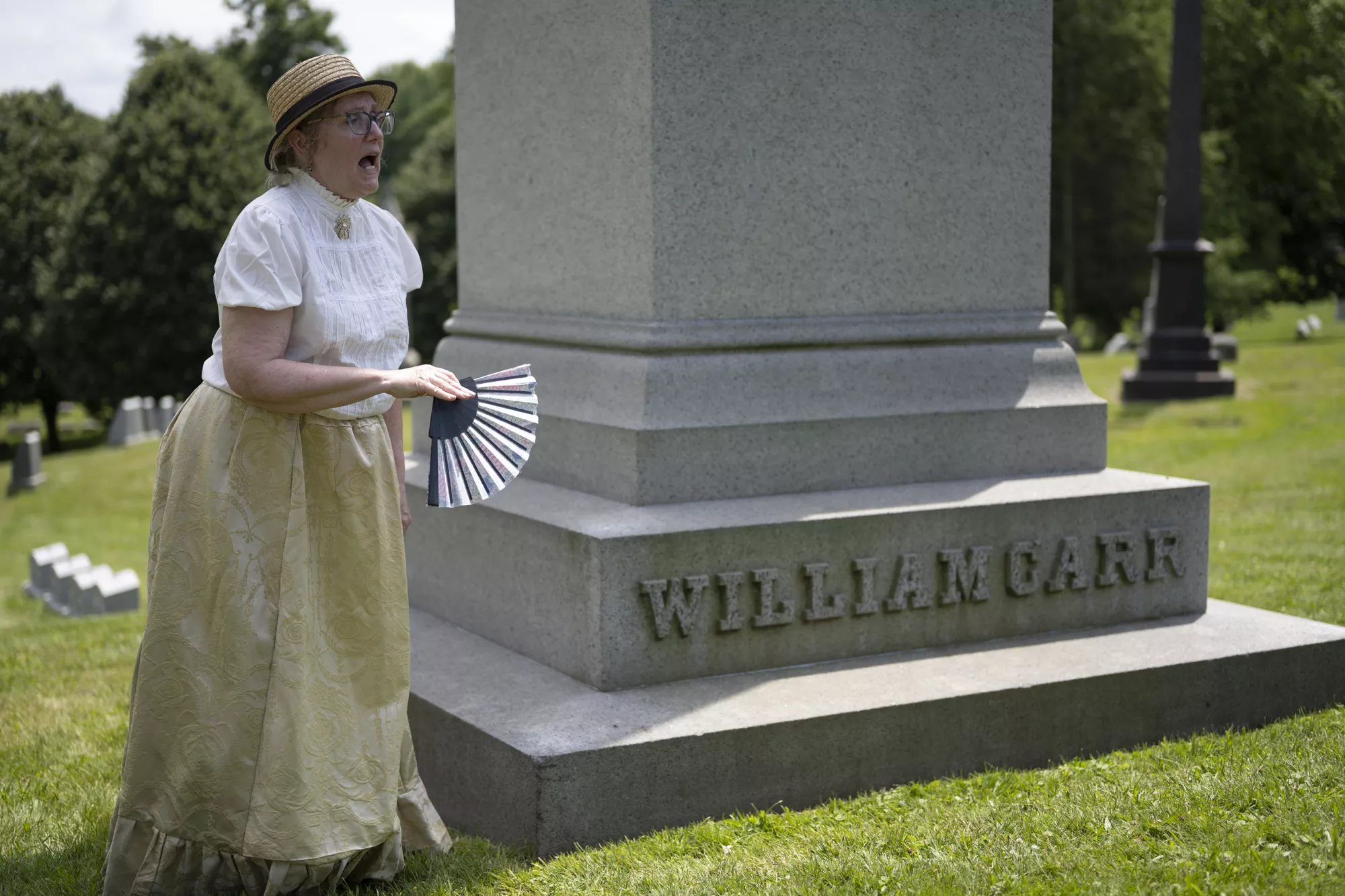 At Prime Stage Theatre’s Allegheny Cemetery Walk, Lawrence McCullough beckons visitors up a hill saying, “Please, come! There are seven residents, and they’re all loquacious!”