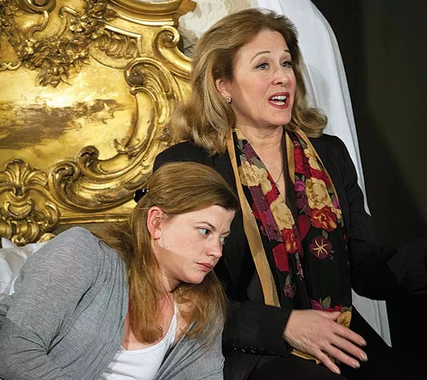 That’s an apt description of the matriarch. Lilian wavers between comparing herself to Persephone, goddess of the Underworld, and her mother, Demeter, goddess of the Harvest. Helena Ruoti blends well-bred charm with un-self-conscious evil, ably portraying the dark appetites behind Lilian’s cultured mask. She occupies the still-posh hotel room five years ago — i.e., at the end of the 20th century according to the 2004 play.